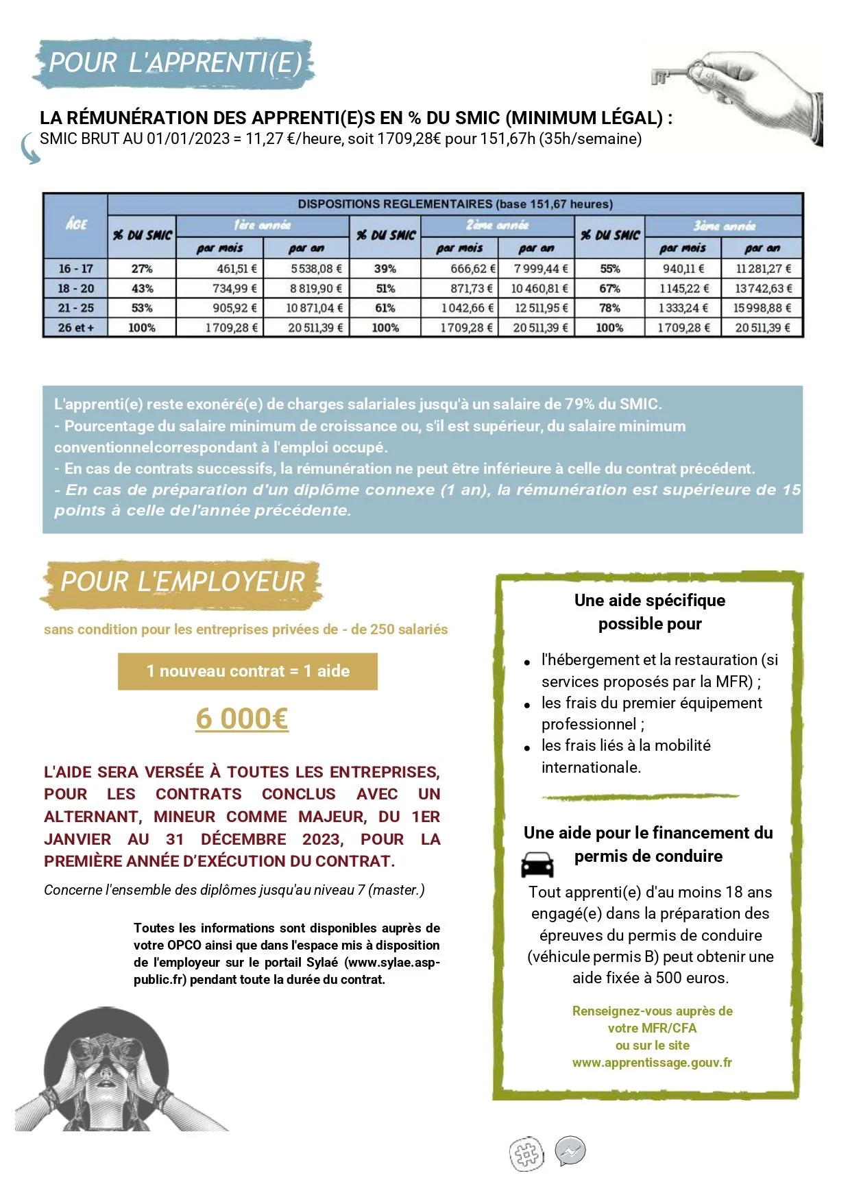 Le temps de travail de l’apprenti est identique à celui des autres salariés de l’entreprise incluant le temps de présence à la MFR, Centre de Formation d’Apprentis (CFA).